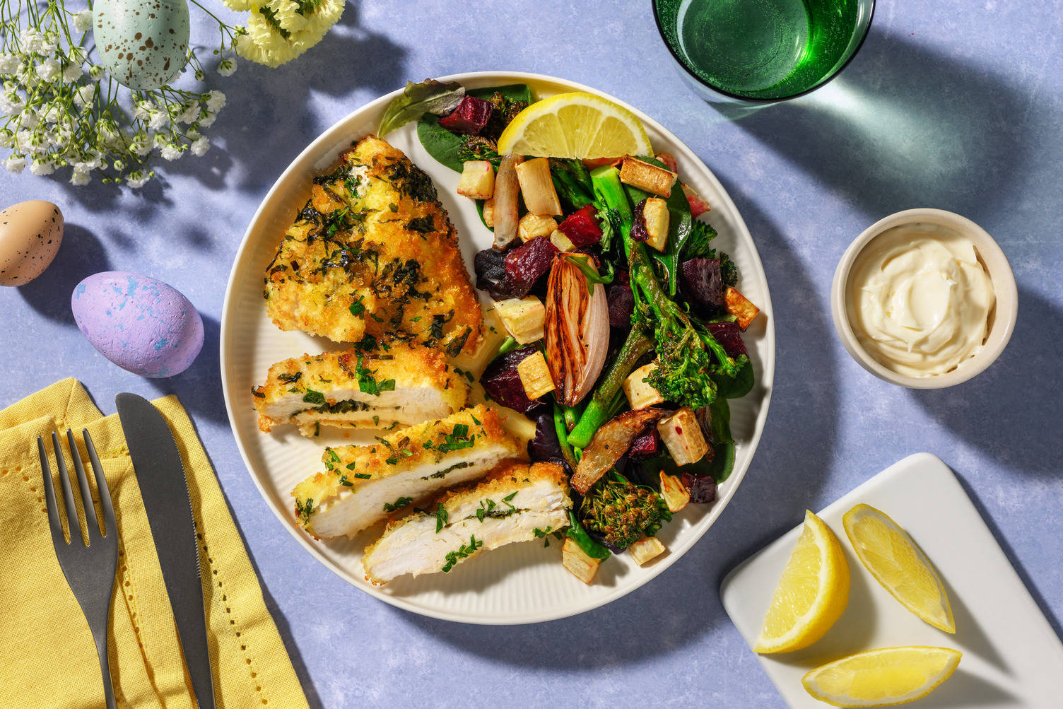 Tilsæt Middelhavsdrøm, olivenolie [1 spsk | 2 spsk] og et nip peber, og vend sammen.